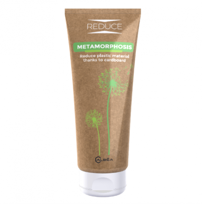 Metamorphosis, the first carton-based cosmetic tube, where plastic is reduced and replaced with a bio-based and certified paper-like material.