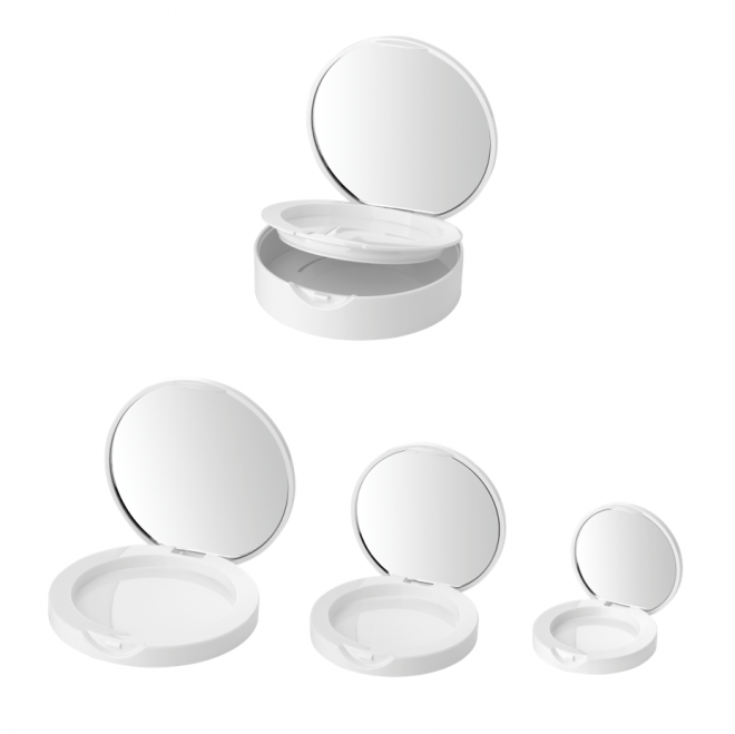 Back to catalog Onyx Family Our best seller round collection made with PCR PET content Slim & flat design A material switch making them more sustainable than before! Opening: elegant rounded tab Technical information Ref# CM-282 (TWC), CM-256 (L), CM-255 (M), CM-253 (S) Formula type Pressed and poured Pack type One pan Hinge Type Pinning Closing Type Snapping Mirror Available Transparent cover Not available Pack diameter Ø76mm, Ø76mm, Ø63mm, Ø51mm Panwell size Ø59,3mm, Ø59,3mm, Ø49,11mm, Ø36,8mm Material Cover: 70% ABS + 30% r-PET Base, plate, platform: 70% PET + 30% r-PET Status Industrial Request a quote Download the product sheet